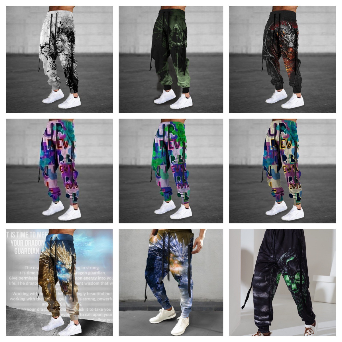 Drawstring Elastic Waist Retro Harem Pants With 3D Animal Print Mens Athletic Trousers